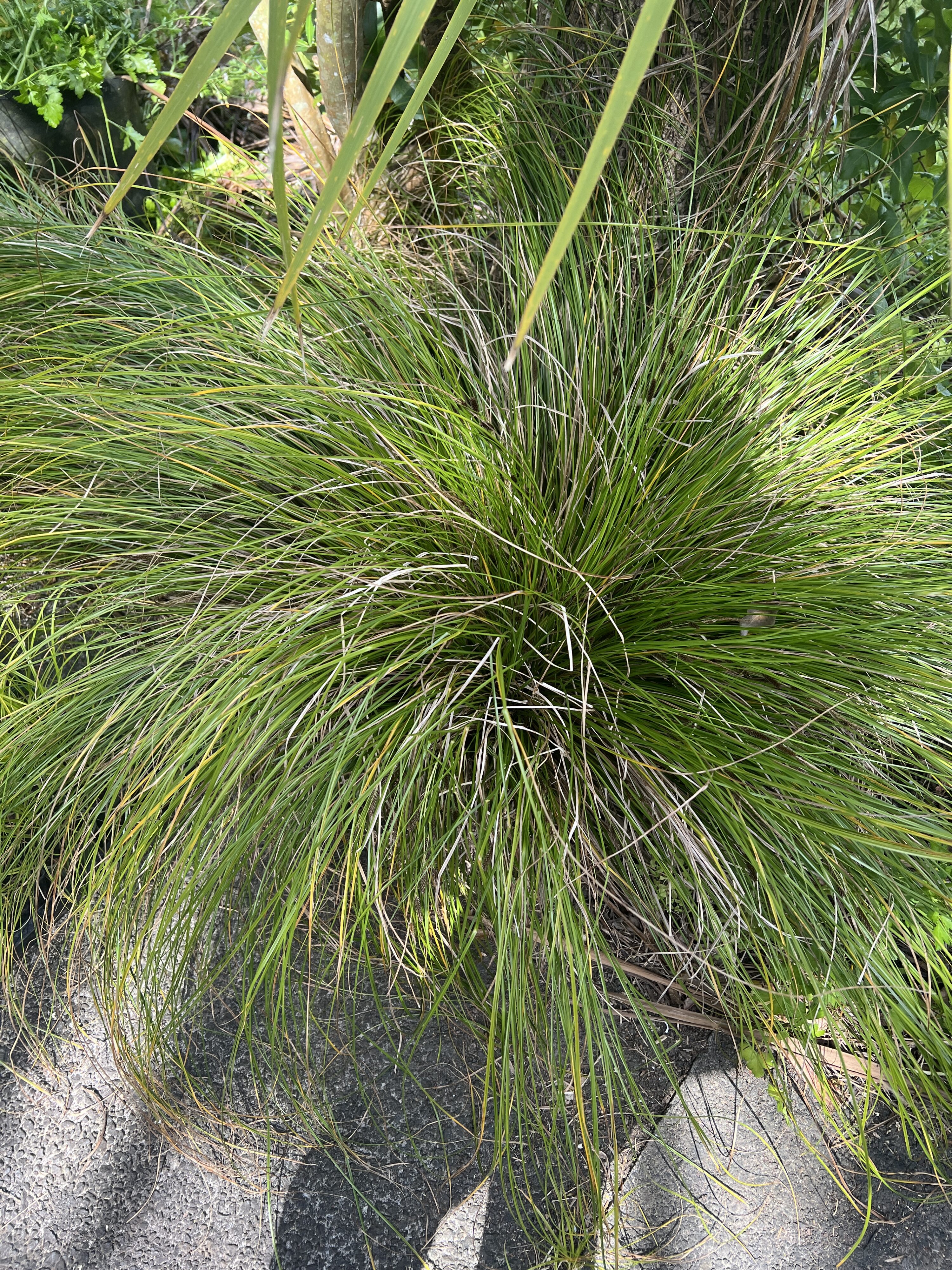 We also have a few native trees , shrubs and ground covers of various kinds, including karaka, mapou, totara ti kouka, karamu, houpara and the tiny native sedge Carex inversa, which is good for filling cracks with its spreading rhizomes that help keep out the less attractive wildings such as dandelion, dock etc.