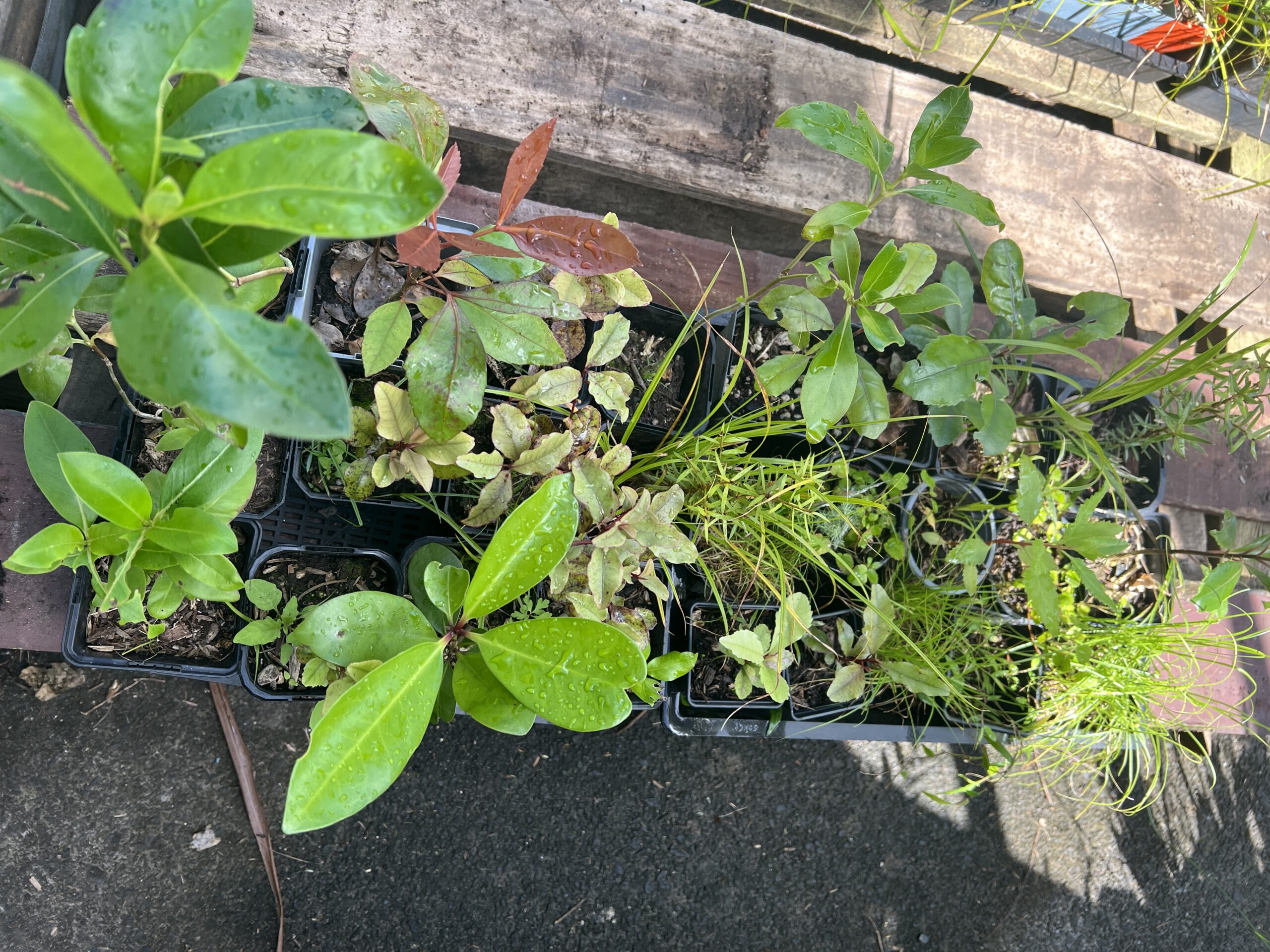 Fuchsia procumbens / Scrambling Fuchsia – a pretty little creeper with tiny “ballerina” flowers to look out for in summer (but there are none on this young plant yet:) These Fuchsia plants are not ecosourced, but it is a locally native species)